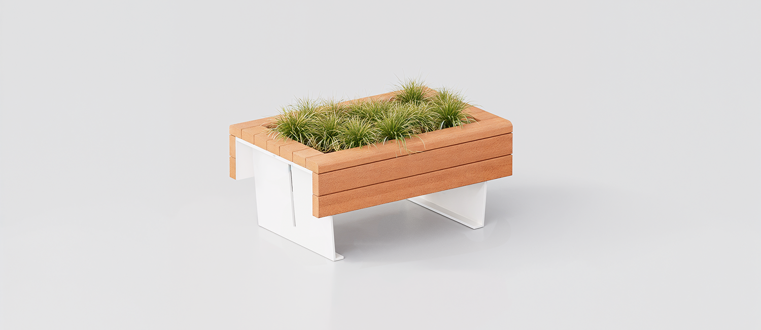 Dalle forme essenziali, la fioriera Flea è caratterizzata da un rivestimento in pregiato legno di tipo Okumè. Struttura costituita da supporti laterali in lamiera di acciaio zincato sagomato e presso-piegato, con intagli ricavati da taglio laser. Rivestimento superiore e laterale costituito da profili in legno di tipo Okumè. Vasca interna realizzata in lamiera zincata. La fioriera è dotata alla base di fori per l'eventuale fissaggio al terreno.