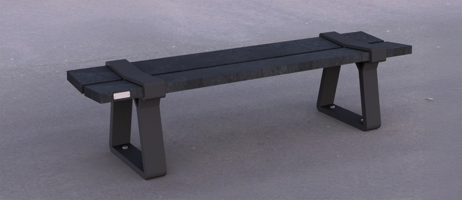 La panca Riga è una soluzione di seduta elegante e resistente, realizzata al 100% in plastica riciclata. Rinforzata con gambe stampate in 3D, garantisce una resistenza duratura.